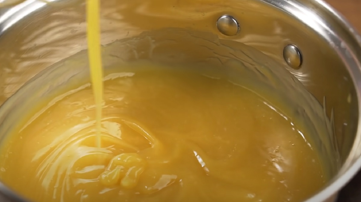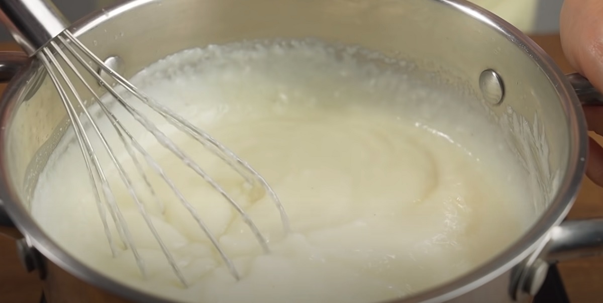 Starannie mieszaj składniki, aby nie powstały grudki. Masa powinna być gotowa po około 1 minucie. Pod koniec gotowania dodaj masło i wymieszaj składniki do połączenia.