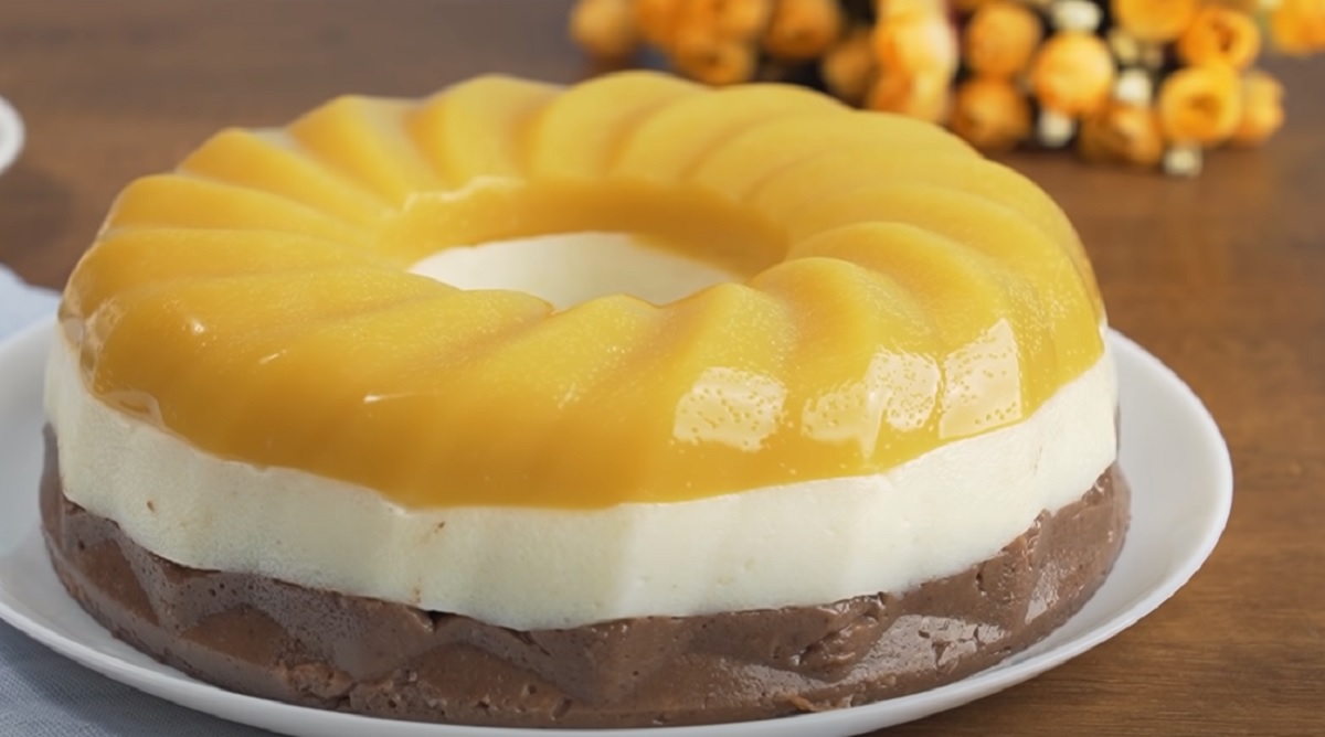 Masę podziel na dwie części, a jedną z nich wylej na ostygniętą masę pomarańczową. Wszystko ładnie wyrównaj i ponownie umieść w chłodnym miejscu.