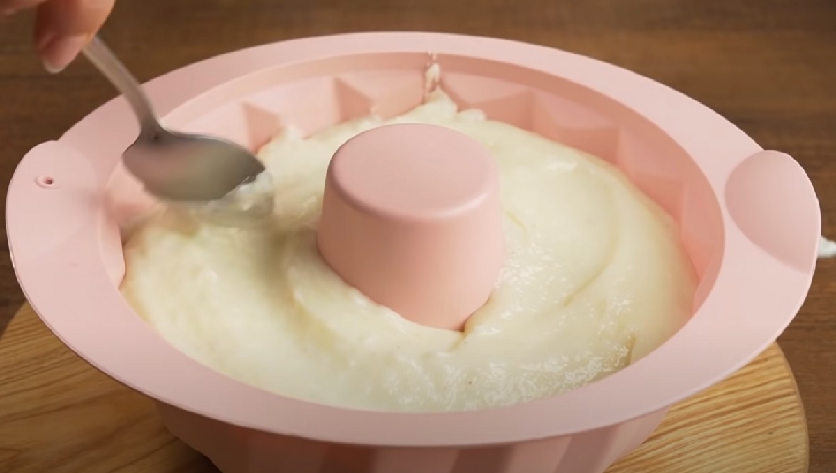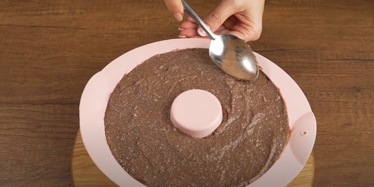 Masę rozprowadź w formie, w której znalazła się biała i pomarańczowa masa.
