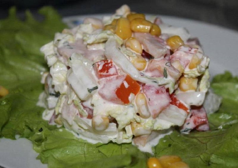 Przygotowanie: Papryka i pomidora pokrój w kostkę, a ogórki na plasterki. Mięso ugotuj i pokrój.Wszystko razem wymieszaj, dodaj jogurt i dopraw solą oraz pieprzem.