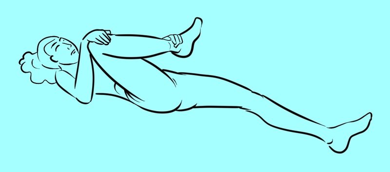Umieść stopy płasko na gładkiej powierzchni. Kolana powinny być ugięte. Skrzyżuj nogi i podeprzyj je rękoma. Pozostań w tej pozycji przez około 30 sekund. Możesz wracać do pozycji wyjściowej kilka razy.