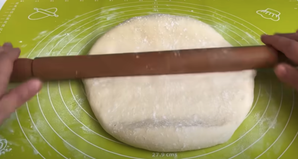 W małym rondelku roztop masło, dodaj posiekany czosnek i pietruszkę. Dopraw solą i dodaj łyżeczkę miodu. Wymieszaj i odstaw na bok. Po wyrośnięciu ciasta, podziel je na równe części i uformuj z nich bułeczki. Umieść kawałki mozzarelli wewnątrz każdej bułeczki.