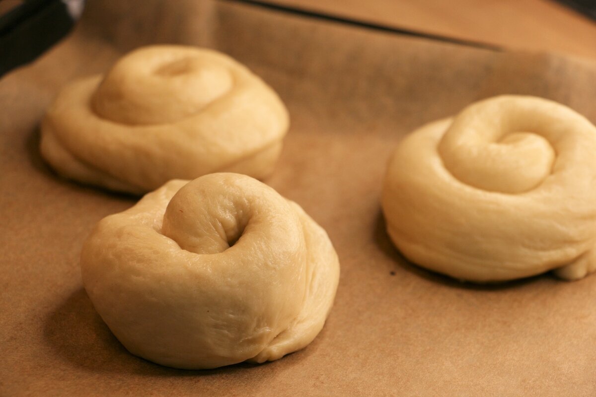 Użyj około 30g świeżych drożdży. Przed włożeniem bułeczek do piekarnika posmaruj je roztrzepanym jajkiem.