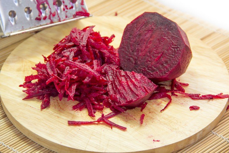 Buraki ugotuj do miękkości, zetrzyj je na tarce o grubych oczkach lub pokrój je drobno nożem. Dodaj czosnek przeciśnięty przez praskę oraz posiekane zioła, które rozetrzyj w dłoniach, aby wydobyły z siebie najwięcej aromatu.