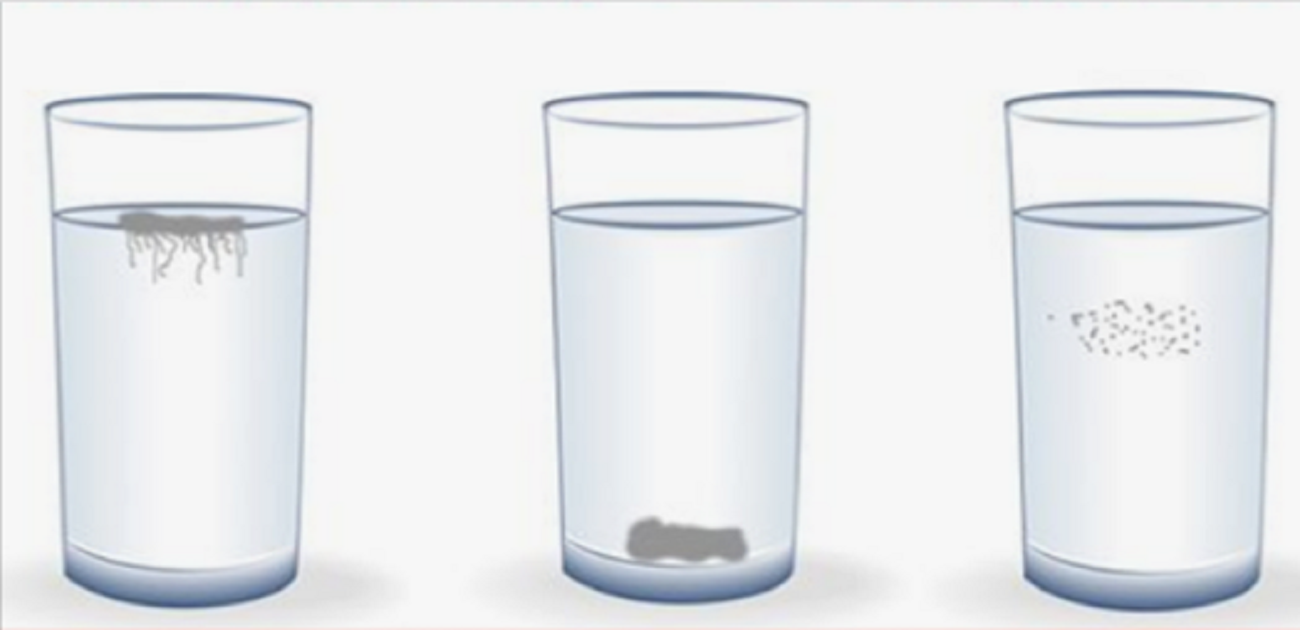• rozwarstwiona ślina, podobna do chmury, opadająca na dno lub unosząca się jak mgła aerozolowa
