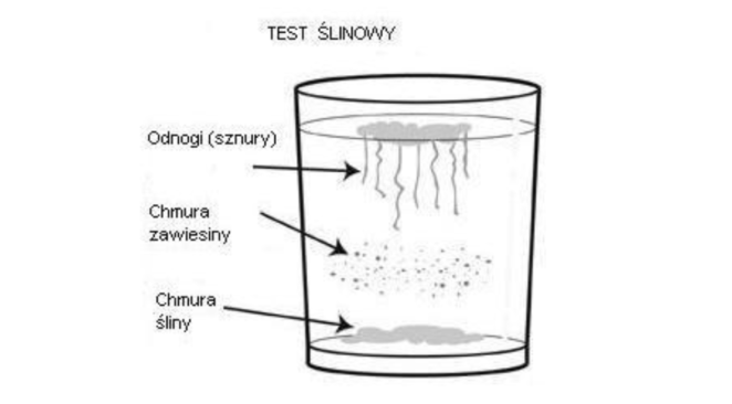 Przygotuj czystą, przejrzystą szklankę wody. Rano nie wykonuj żadnych czynności, tylko od razu po przebudzeniu, zbierz ślinę w ustach i napluj do niej.