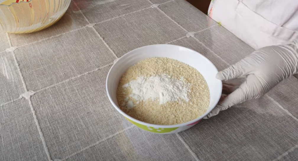 Ustaw piekarnik na 180°C. W dużej misce ubij trzy jajka w temperaturze pokojowej. Dodaj 1 łyżeczkę (5 ml) soku z cytryny. Dodaj ¼ szklanki (60 ml) oleju z pestek winogron (lub oleju roślinnego/roztopionego masła). Dodaj ¼ szklanki (60 g) cukru i lekko wymieszaj. Następnie dodaj ½ szklanki (120 g) zwykłego greckiego jogurtu i wymieszaj wszystko na gładko.