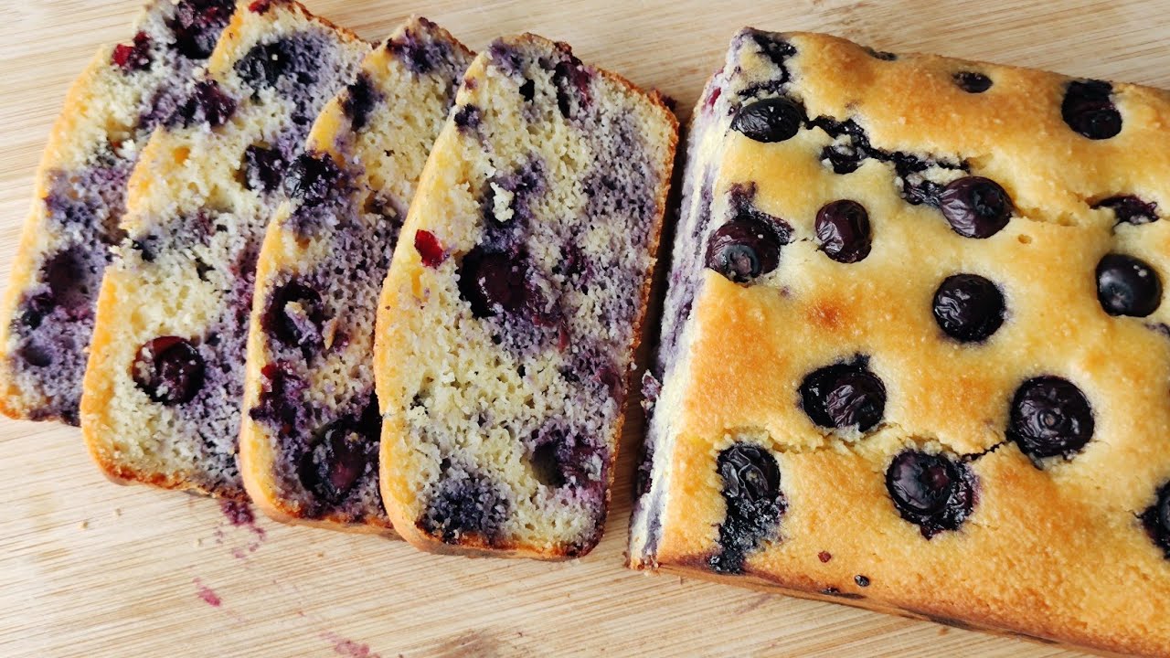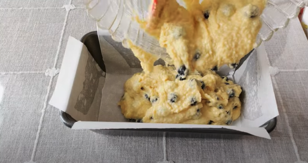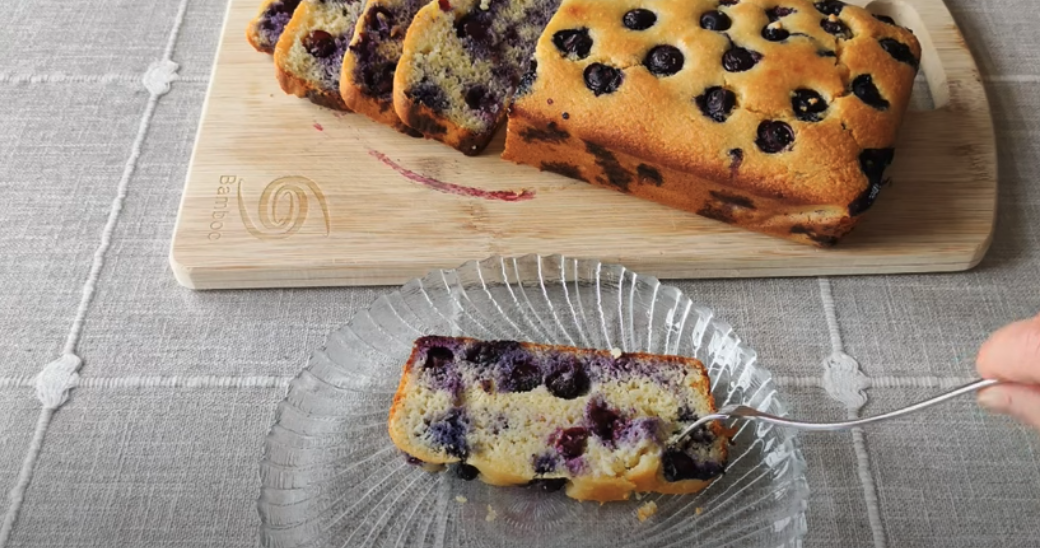 Wlej ciasto do formy i wygładź wierzch. Opcjonalnie, dodaj trochę świeżych jagód na wierzchu. Przenieś formę do nagrzanego piekarnika. Piecz przez 40-45 minut, aż wykałaczka włożona do środka wyjdzie czysta. Pozwól ciastu ostygnąć na blasze przez 5 minut, następnie przełóż na stojak.