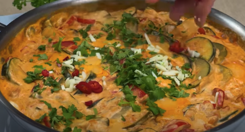 Smaż przez kolejne 5 minut, a następnie dodaj pomidory i pietruszkę. W miseczce wymieszaj kwaśną śmietanę, mąkę i wodę, a następnie dodaj do patelni. Gotuj przez 5 minut, mieszając od czasu do czasu. Dodaj drobno posiekany czosnek i chile (jeśli używasz). Na drugiej patelni rozgrzej 4 łyżki oleju do smażenia.