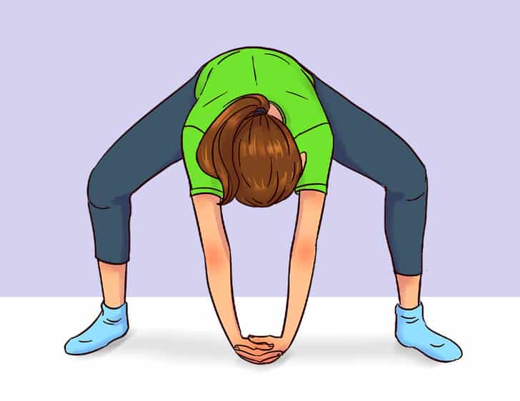Aby je wykonać należy stanąć na podłodze z nogami rozstawionymi na szerokość Twoich bioder. Łagodnie skieruj palce na boki, a następnie ugnij kolana. Wyciągnij szyję i podnieś ręce na wysokość jaką jesteś w stanie uzyskać. Przyjmując taką pozycję pochylaj się do przodu, aż do momentu kiedy dotkniesz rękoma podłogi. Udało się?