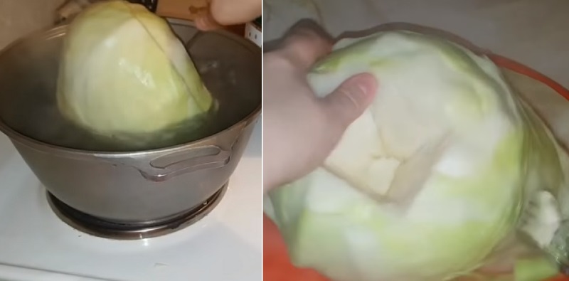 Na samym początku czas na przygotowanie liści kapusty. Postępuj tak, jak w przypadku tradycyjnych gołąbków. Kapustę zagotuj w wodzie z dodatkiem oleju i delikatnie oddzielaj liście. Wyjmij je i pozostaw do ostudzenia. Możesz przyspieszyć ten proces wkładając je do miski z zimną wodą.