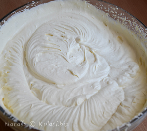 Odlej trochę mleka do miseczki – będzie potrzebne do zanurzania herbatników. Pozostałe wlej do miski wraz ze śmietanką, wsyp cukier, cukier wanilinowy oraz pudding w proszku. Ubijaj do uzyskania gęstej, sztywnej masy (ok. 5 minut).