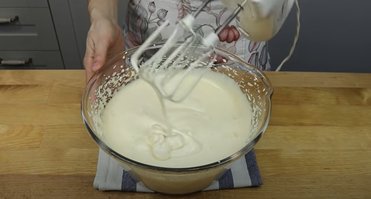 Najpierw przygotuj biszkopt. Zacznij od wymieszania jajek i cukru w mikserze. Powinno to trwać około 10 minut na najwyższych obrotach.