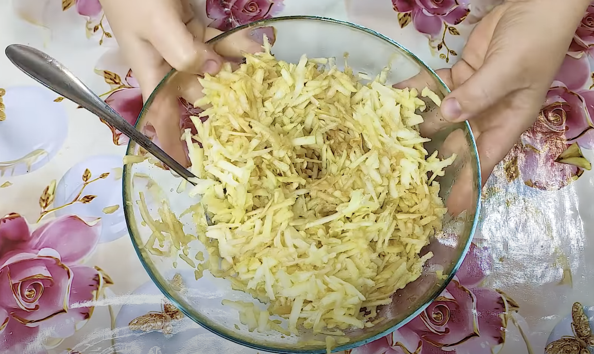 Blachę wyłóż papierem do pieczenia. Na dnie rozsyp starte i przygotowane wcześniej jabłka. Blachę do pieczenia lekko posmarować masłem.