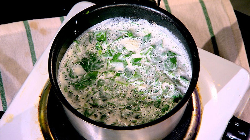 Umytą pietruszkę drobno posiekaj. Zagotuj mleko, a następnie dodaj do niego pietruszkę, tak aby była całkowicie przykryta. Podgrzej, ale nie doprowadzaj do zagotowania. Pij co godzinę 2 łyżki mikstury.