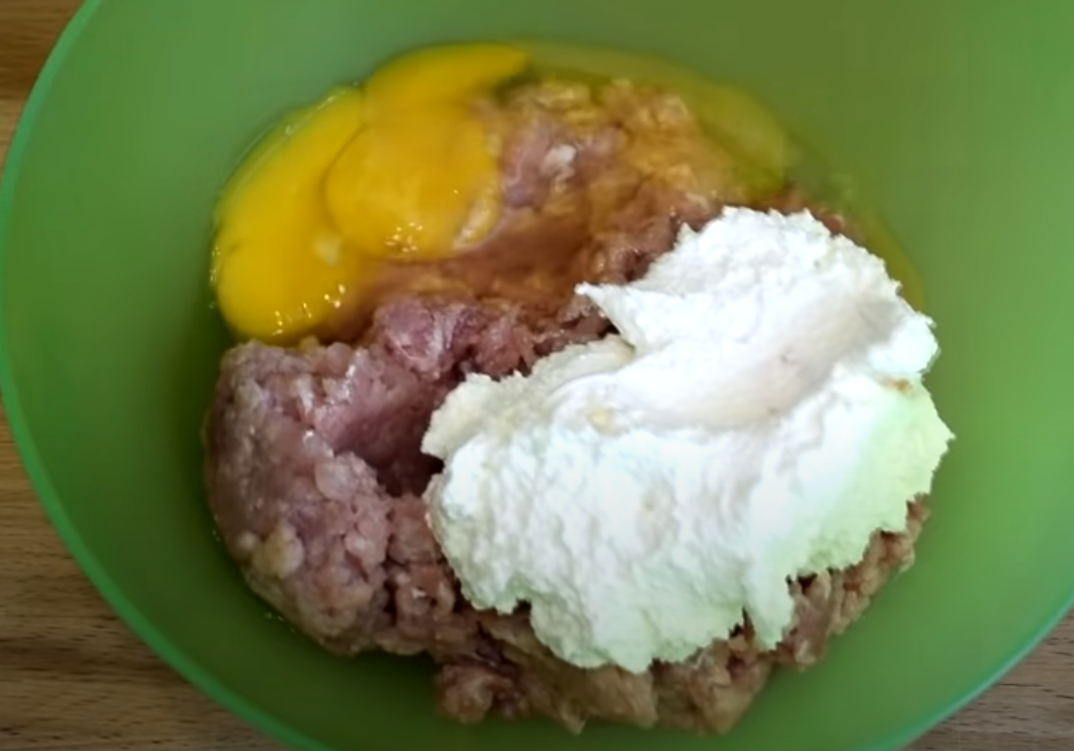 W jednej misce połącz twaróg z mikserem. Wmieszać mięso mielone, ajak, sól i pieprz. Zmiksować. Mieszać.