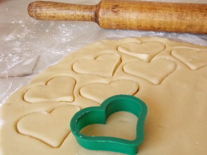 Rozwałkuj ciasto, zwróć uwagę na to aby nie było zbyt cienkie. Wykrój ciasteczka używając szklanki lub specjalnych foremek.