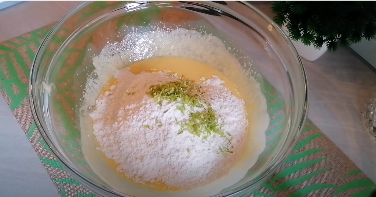 Ponownie wymieszaj. Dodaj mąkę do miski.
