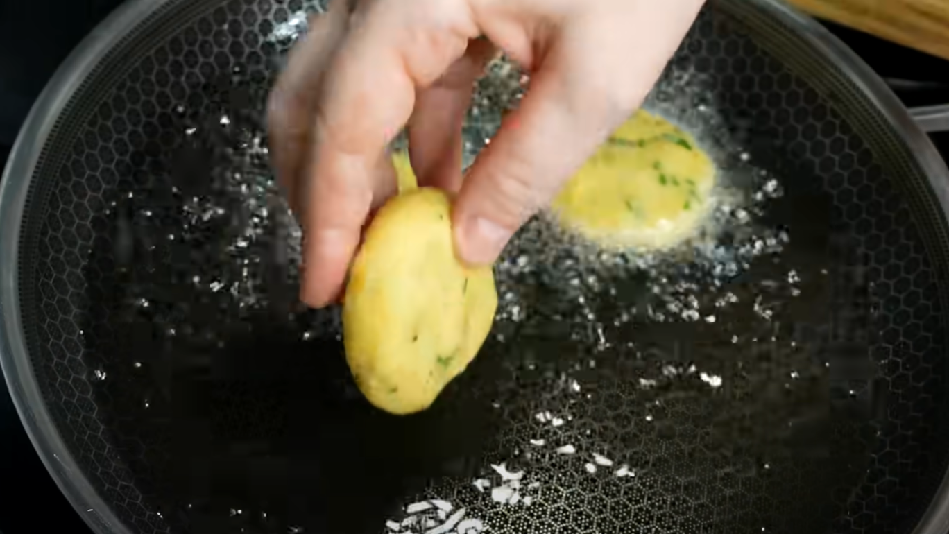 • Uformuj z masy ziemniaczanej kulki, a następnie spłaszcz je w placki.