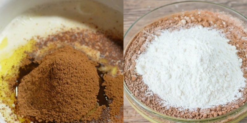 Następnie, do składników należy dodać olej. Kolejnym etapem jest dodanie do mieszanki aromatycznego kakao. Ostatnim z etapów jest dodaniem do mieszanki składników mąki oraz proszku do pieczenia.