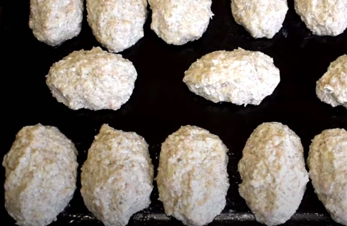 Przygotuj drugą miskę. Dodaj bułkę tartą, wodę i mięso do drugiej miski. Nasmaruj olejem blachę do pieczenia. Z masy mięsnej uformuj kotlety lub kulki i ułóż je na blasze do pieczenia.