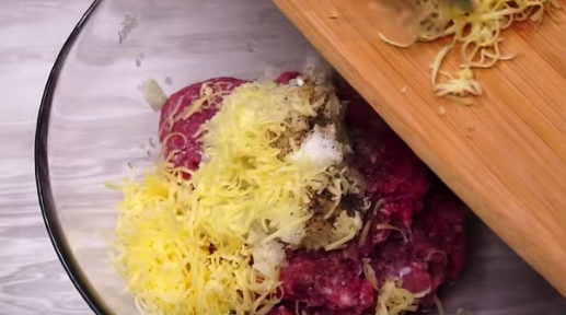 Na samym końcu dodajemy czarny pieprz w minimalnej ilości. Ser ścieramy na drobnej tarce. Dodajemy go do miski z mięsem i całość bardzo dokładnie mieszamy. Odstawiamy na chwilę na bok. Do drugiej miski wbijamy jajka, mleko, trochę soli. Wszystko razem mieszamy za pomocą trzepaczki, tak aby powstała jednolita masa.