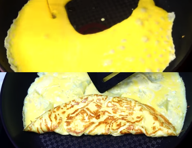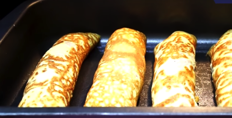 Mięso nakładamy na niesmażonej stronie naleśnika i rozprowadzamy po całości, a potem zwijamy to w rulonik.