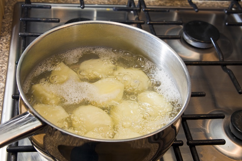 Gdy zawartość garnka ostygnie możesz przystąpić do kolejnego kroku. Zmiel ziemniaki razem z wodą, w której się gotowały. Możesz użyć w tym celu blendera.