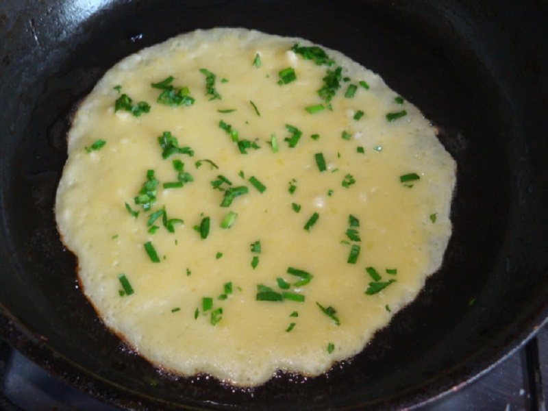 Na rozgrzaną patelnię wlej odrobinę oleju roślinnego i przystąp do smażenia naleśników. W trakcie smażenia możesz posypywać naleśniki ziołami. To doda im więcej smaku i aromatu.