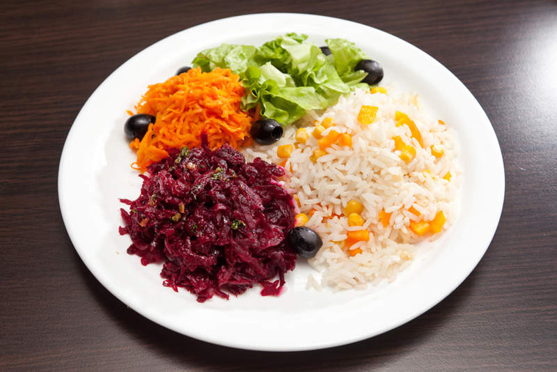 Ugotowane warzywa zetrzyj na grubych oczkach – odłóż na talerz. Do osobnej miseczki wsyp ryż i kukurydzę – wymieszaj.