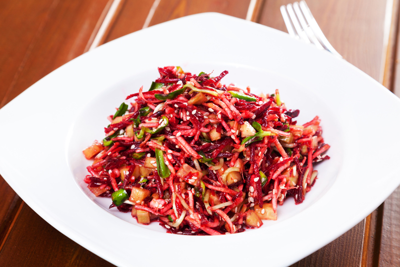 Przepisy kulinarne Jem i nie boję się, że przytyję. Te sałatki na odchudzanie z buraków można jeść nawet w nocy. Na smukłą talię. Last updated wrz 16, 2022 250 Składniki 1 marchewka 1 burak 1 mały seler połowa kapusty sezam sok z cytryny sól zioła oliwa z oliwek Kapustę oczyść i poszatkuj. Pozostałe warzywa obierz, myj, osusz, a następnie zetrzyj na tarce. Połącz wszystko w misce. Dodaj do sałatki łyżkę soku z cytryny oraz kilka kropel oliwy z oliwek. Posól, posyp ulubionymi ziołami. Na koniec dodaj 2 łyżeczki sezamu. Gotowe! WróćCzytaj dalej