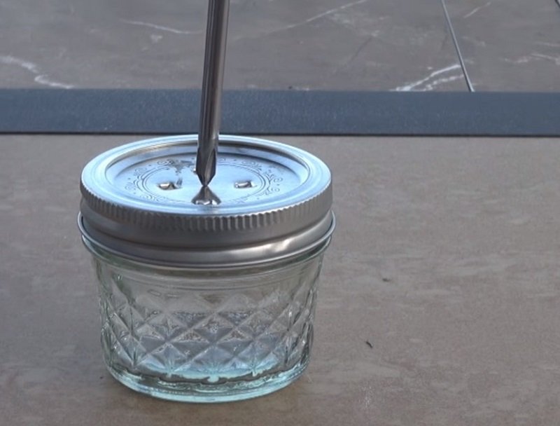 W kolejnym kroku zamknij szczelnie słoik za pomocą pokrywki lub kawałku folii, a następnie wstrząśnij zawartością. Końcową czynnością jest zrobienie kilku drobnych otworów w pokrywce. Możemy do tego użyć gwoździa i młotka lub zwykły śrubokręt.