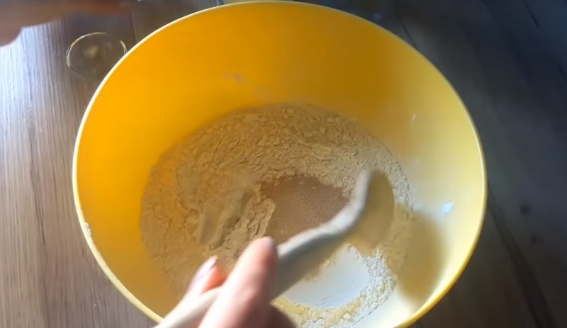 Mąkę przesiej przez sito i dodaj do niej sól oraz suche drożdże. Powoli i stopniowo dolewaj wodę i wyrabiaj jednolite miękkie ciasto drożdżowe. Gotowe ciasto odstaw pod przykryciem do wyrośnięcia.