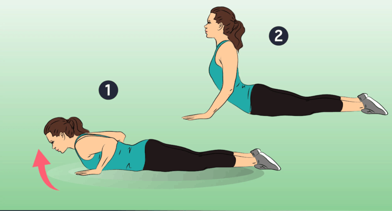 Połóż brzuch płasko na ziemi. Ręce trzymamy na wysokości klatki piersiowej, lekko zginamy łokcie i unosimy głowę. Powoli podnieś głowę do góry i wyprostuj plecy. Pozostań w tej pozycji przez kilka sekund, a następnie wróć do pozycji wyjściowej. Ćwiczenie to można powtórzyć 30 razy.