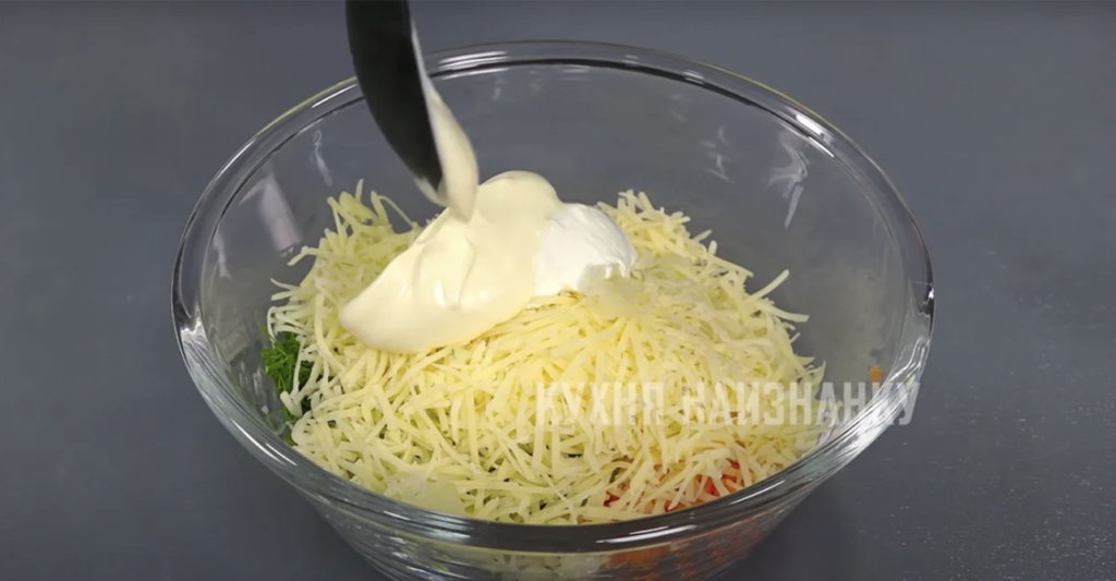 Wszystko połączyć i nakładać na plastry cukinii. Każdy z nich powinien być równy.