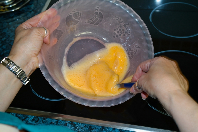 Pozostałe 5 jajek roztrzep i (jeśli chcesz) dodaj trochę cukru do smaku
