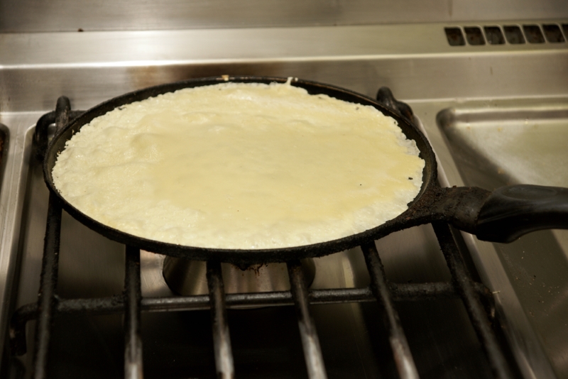Posmaruj patelnię tłuszczem i usmaż naleśniki