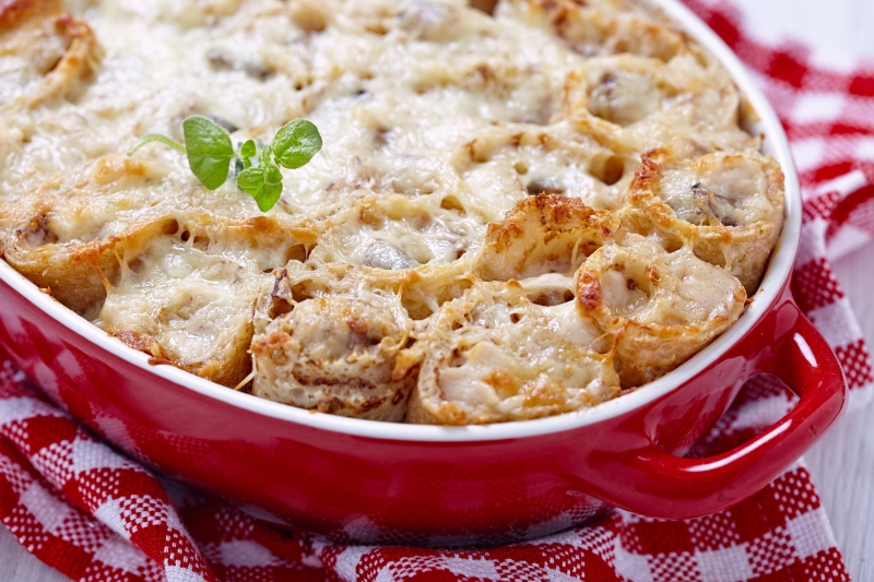 Ułóż ruloniki na blaszce lub w naczyniu żaroodpornym i polej naleśniki śmietaną lub jogurtem