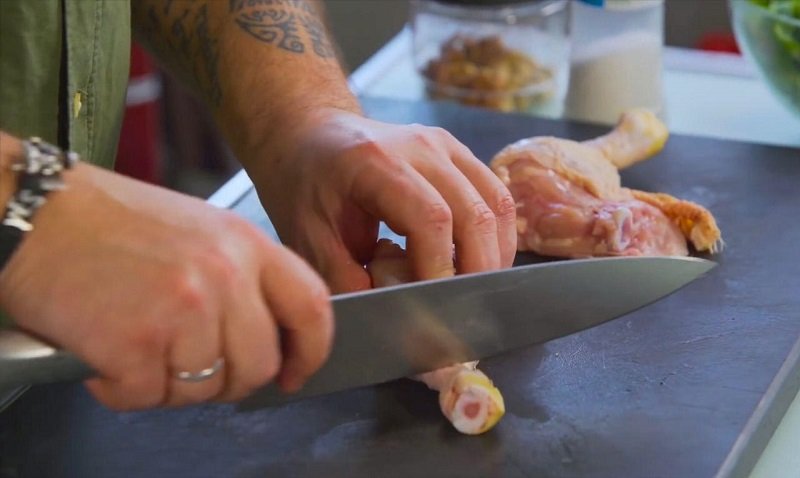 Dzięki temu rolada będzie jeszcze smaczniejsza. To danie można przygotować z całego kurczaka. Najpierw pokrój mięso na małe kawałki. Oddzielić mięso od kości kurczaka. Nie należy usuwać tłuszczu ani skóry.