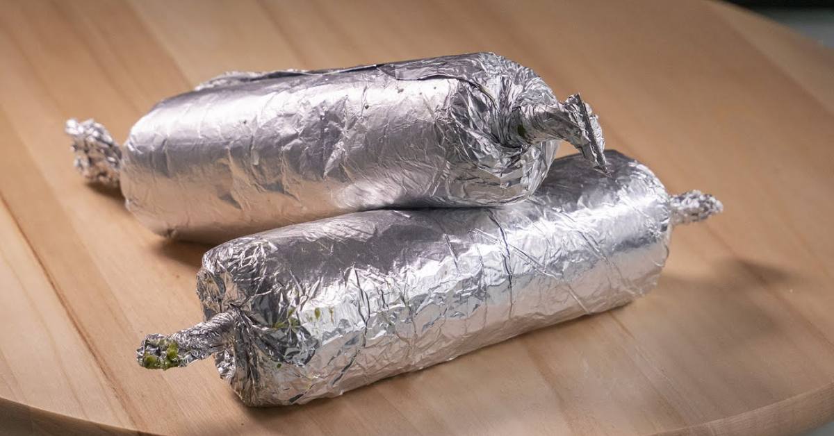 W blenderze połącz masło, mleko i orzechy. Posmaruj folię aluminiową masłem, a następnie umieść kawałki kurczaka z pastą. Gdy skończysz, szczelnie zawiń folię.