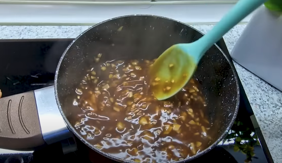 W małym rondelku zmiksuj wodę, sos sojowy, ocet jabłkowy, sos balsamiczny, czerwoną paprykę, miód i skrobię kukurydzianą. Doprowadź do wrzenia i gotuj 1-3 minuty, aż sos zgęstnieje. Wyjmij skrzydełka z piekarnika, obróć je i posmaruj przygotowanym sosem. Zwiększ temperaturę piekarnika do 220°C i piecz przez 5-7 minut.