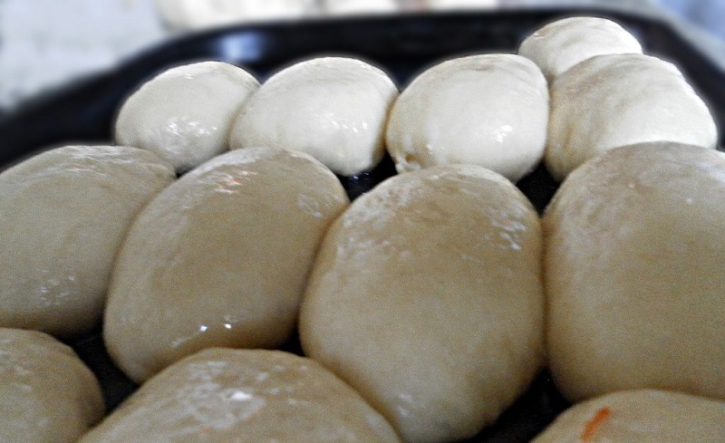 Kiedy drożdże nabiorą odpowiedniej temperatury, a masło nieco ostygnie, dodajemy do niego po kolei: drożdże, sól, cukier i olej słonecznikowy. Całość delikatnie wymieszaj i przelej do miski. Następnie dodaj do masy przesianą mąkę i energicznie ugnieć ciasto, aż zrobi się elastyczne.