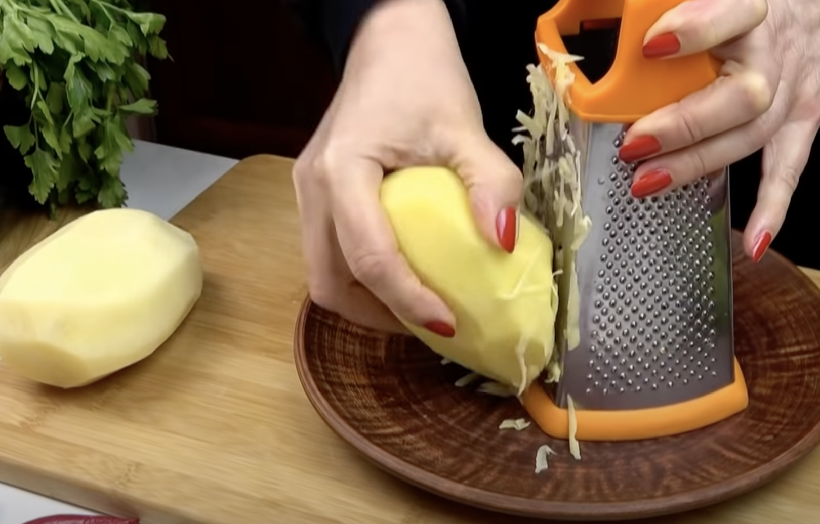 Zaczynamy od obrania i umycia ziemniaków. Następnie trzemy je na dużych oczkach tarki.