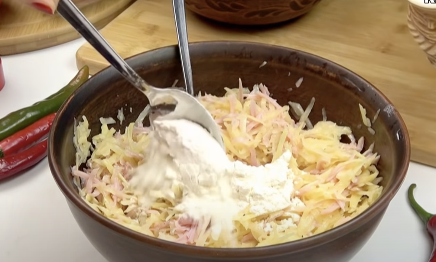 Do tego wędrują przepisowe dwie łyżki mąki, jednak jeśli masa wciąż nie jest wystarczająco zwarta, możemy dosypać jej więcej. Doprawiamy do smaku solą i pieprzem.