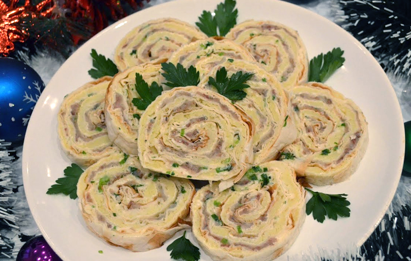Placek smarujemy serkiem, układamy na nim sałatę. Na jednym końcu układamy paluszki, na drugim łososia,a na środku ser. Zwijamy.