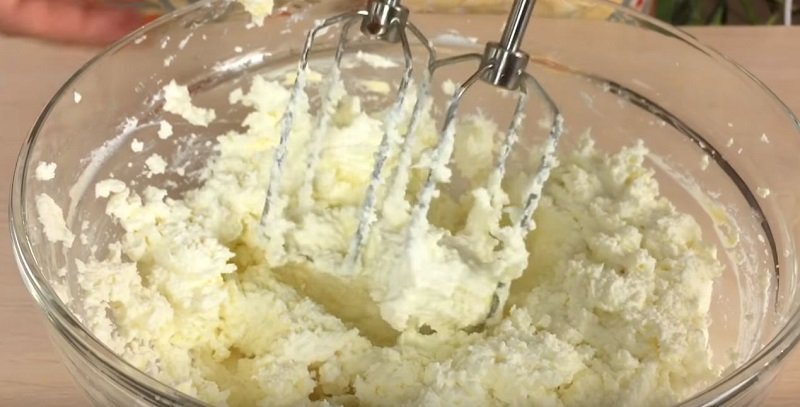 Zmiksuj ser, rozdrobnij orzechy włoskie i ciastka. Następnie do sera dodaj cukier oraz wanilię — dokładnie wymieszaj.